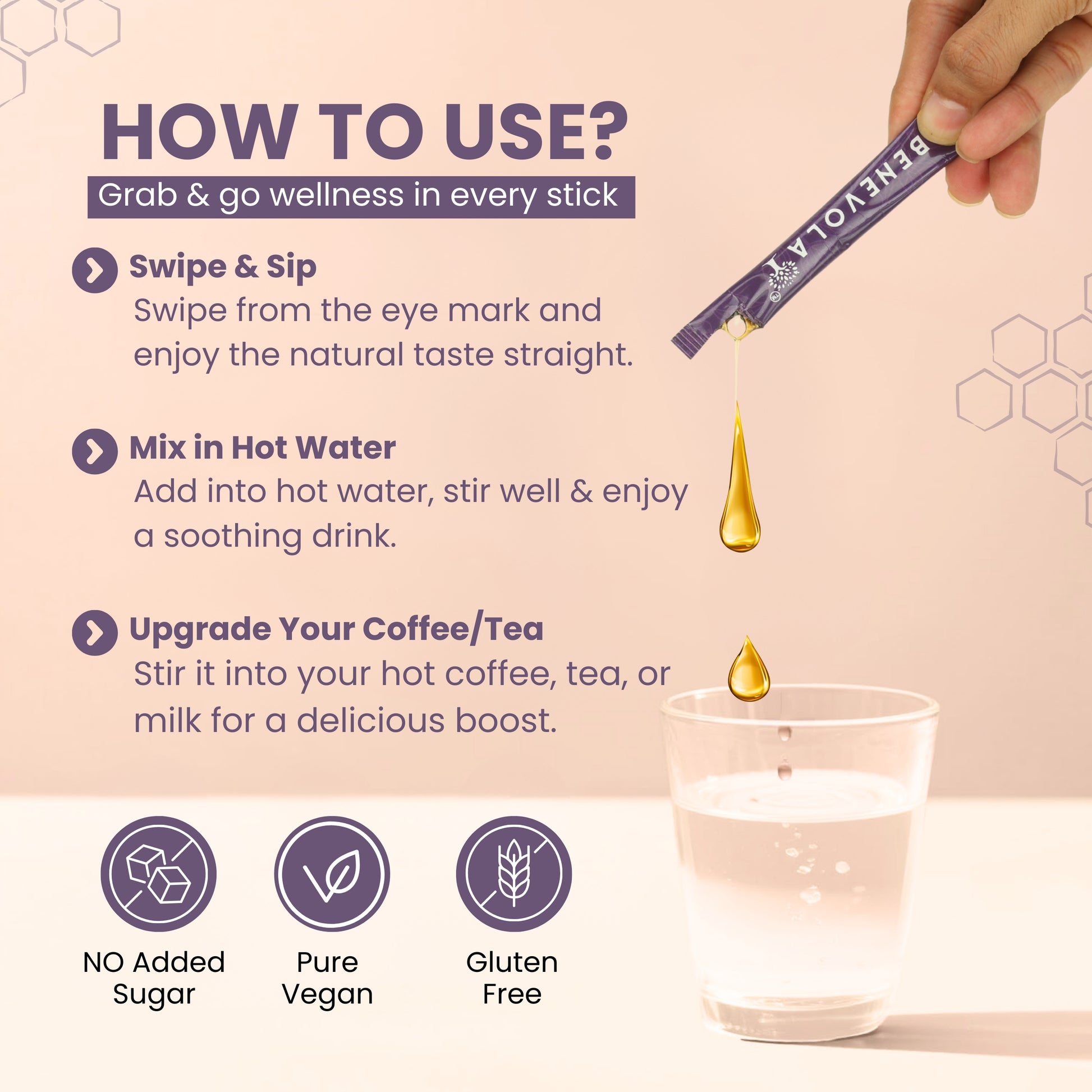 Ashwagandha Honeystick: Infused with clinically studied KSM-66® Ashwagandha and pure honey, it helps reduce stress, enhance focus, and support restful sleep.