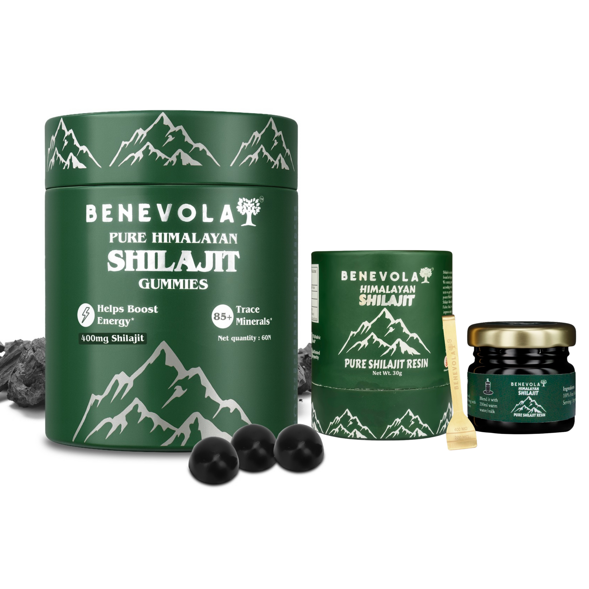 Experience the power of Modern Ayurveda with Benevola Pure Himalayan Shilajit, carefully sourced from the pristine Himalayas. Rich in 85+ trace minerals and fulvic acid, our Shilajit helps boost energy, stamina, and overall vitality. Available in easy-to-consume gummies and authentic resin form, it is designed to support your active lifestyle naturally.